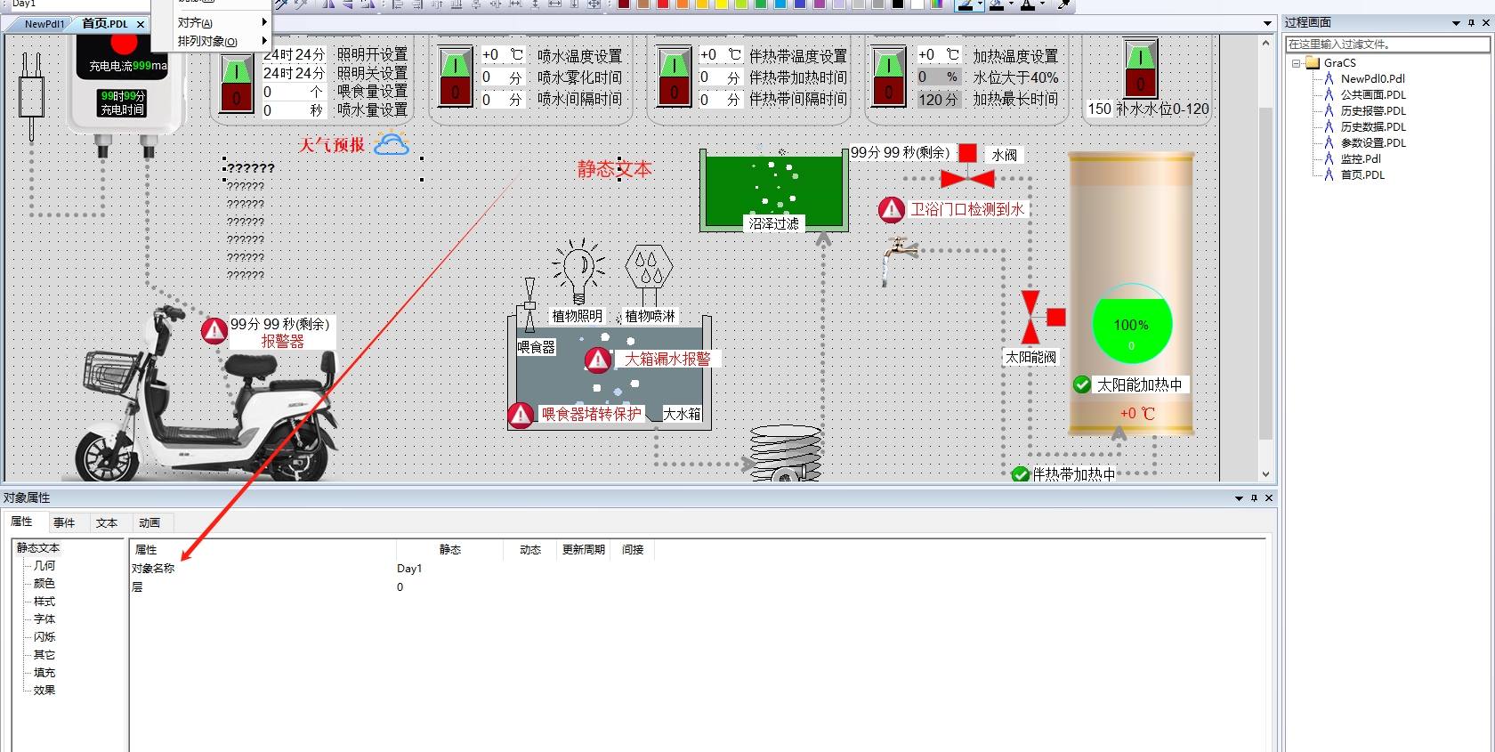 页面做静态文本 对象名称 分别Day1,Day2,Day3-7,分别对应7日的天气 (见下图)